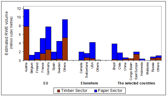 countries, Timber Sector and Paper Sector (RWE volume) All