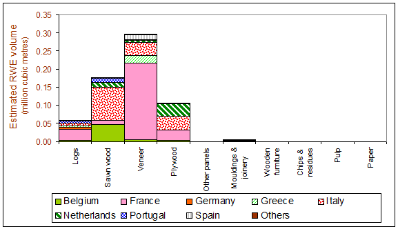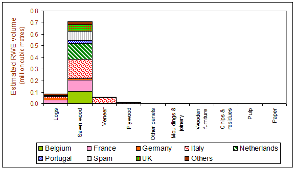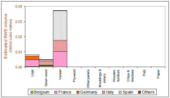 logs and sawn wood reported as imports from Cameroon. Excludes products
