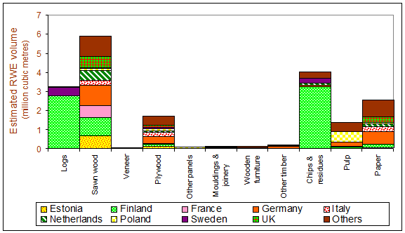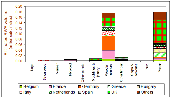 sawn wood, paper and wooden furniture imported by Italy. Supplied