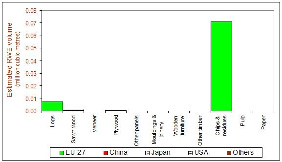 the EU, increasingly (as logs) China. Includes quantities from Republic